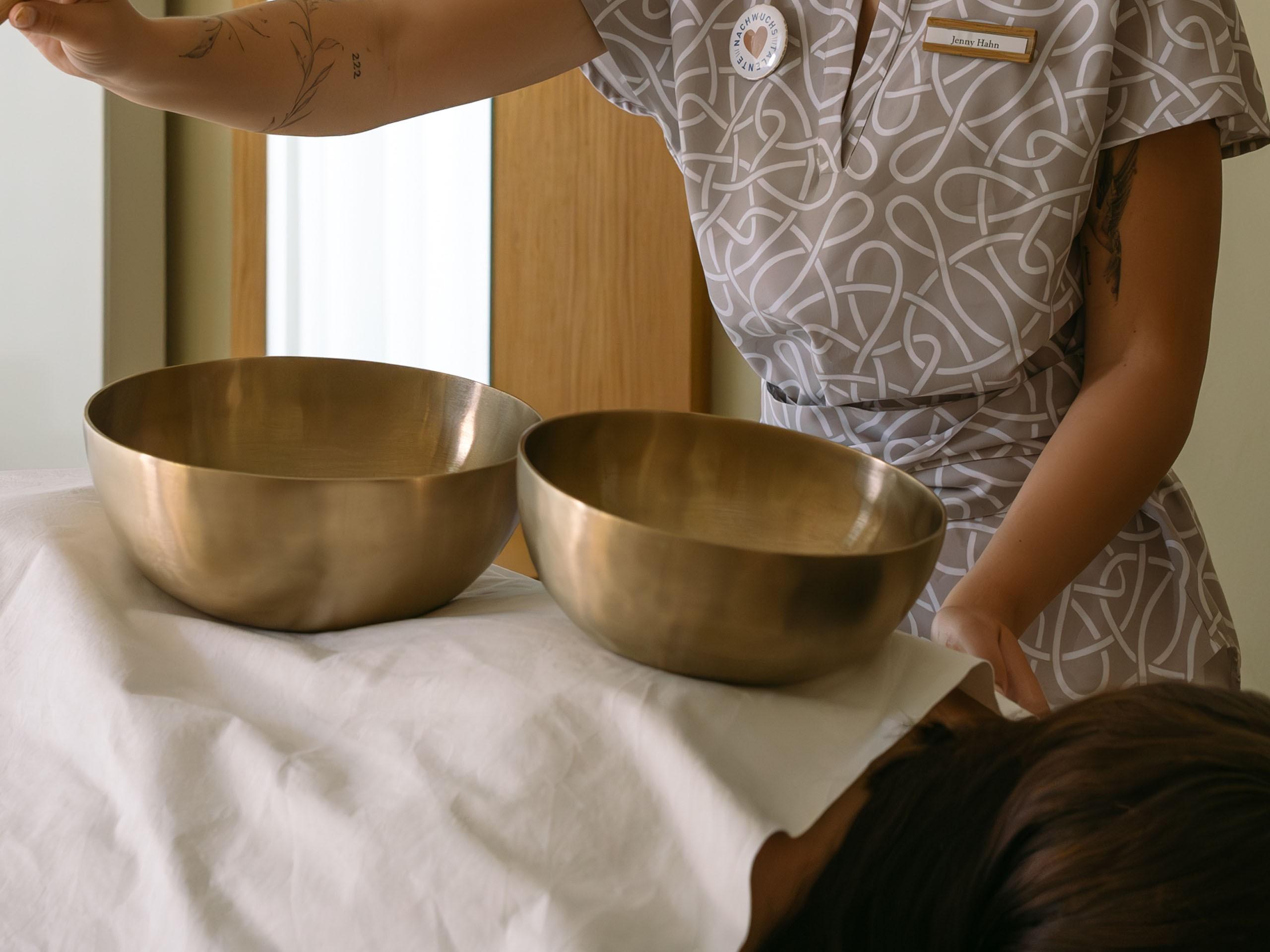 Le monde est composé de sons, et les sons ont toujours eu un impact particulier sur nous, êtres humains. L’ouïe et le toucher sont au premier plan de ce rituel sonore, où la douce résonance des bols chantants viendra vous apaiser. De délicates vibrations plongeront votre corps dans une détente bienfaisante. Les sons harmonieux inviteront votre esprit à se reposer et envelopperont votre âme d’un voile de sérénité. Laissez tous vos sens s’immerger dans une sensation de bien-être et une profonde détente en parfaite harmonie. Remarque : les bols chantants sont positionnés de manière ciblée sur le corps habillé.